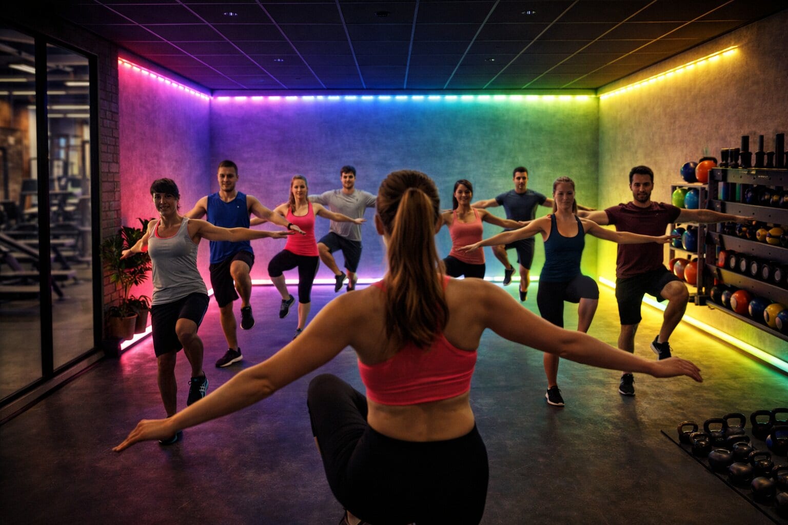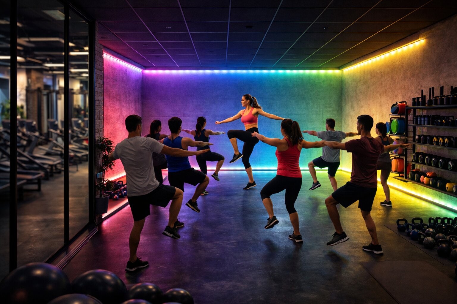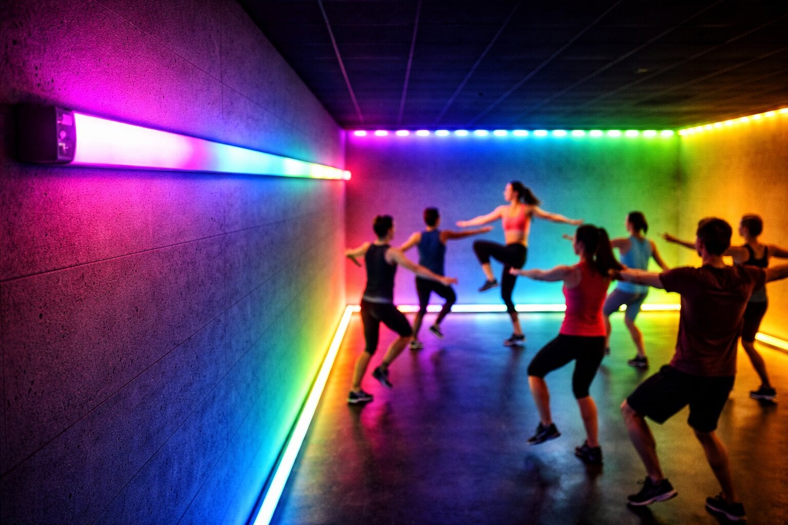 Ljussättning och infärgning av väggar i träningslokaler – Dekor- och discoljus