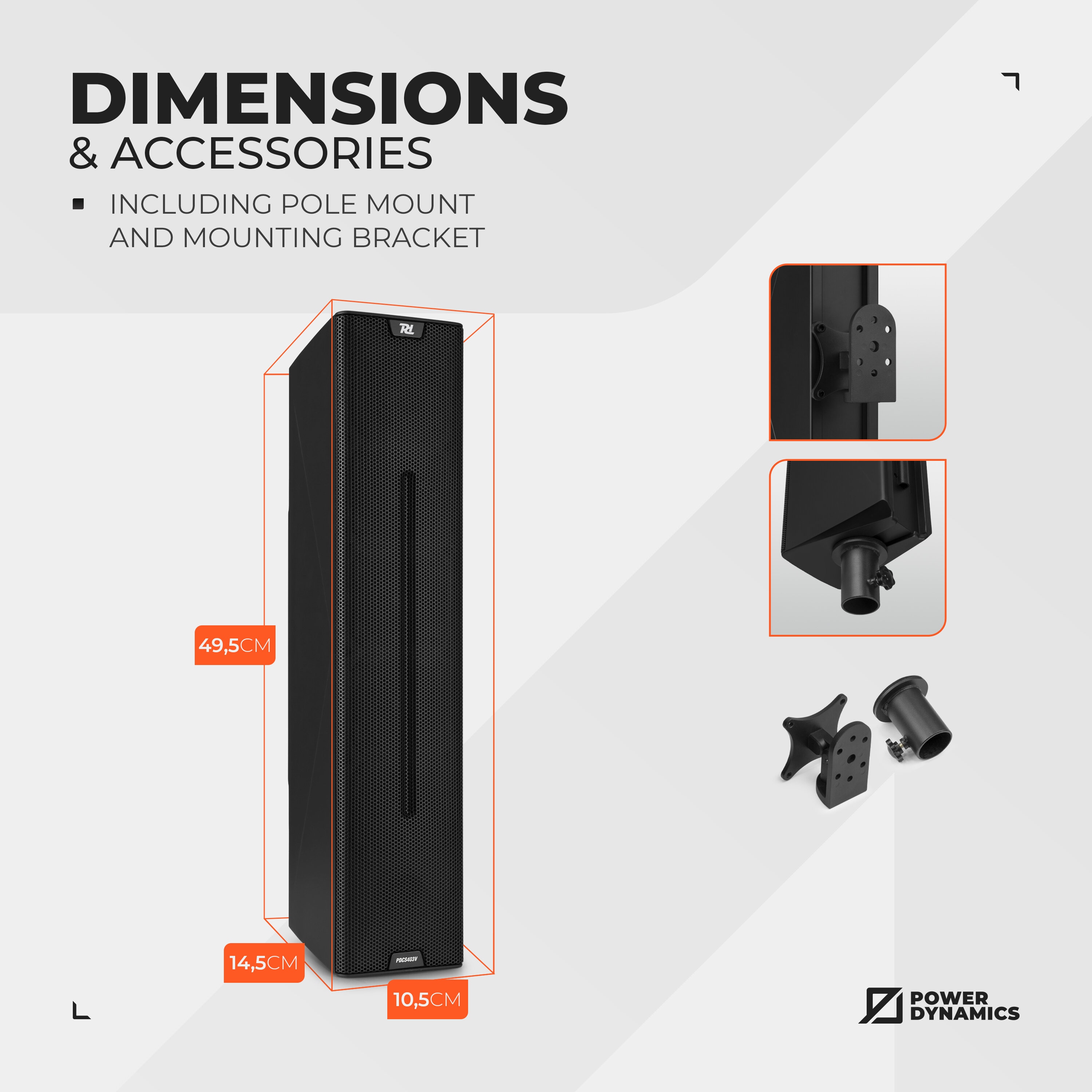 • PDCS-serien från Power Dynamics består av stilrena och kompakta 100V-pelarhögtalare som passar en mängd olika miljöer – allt från kyrkor, konferensrum och hotell till restauranger, eventlokaler och offentliga rum. Tack vare det robusta ABS-höljet och de högkvalitativa elementen levererar PDCS403V både tydlig talåtergivning och fylligt ljud för bakgrunds- och förgrundsmusik.