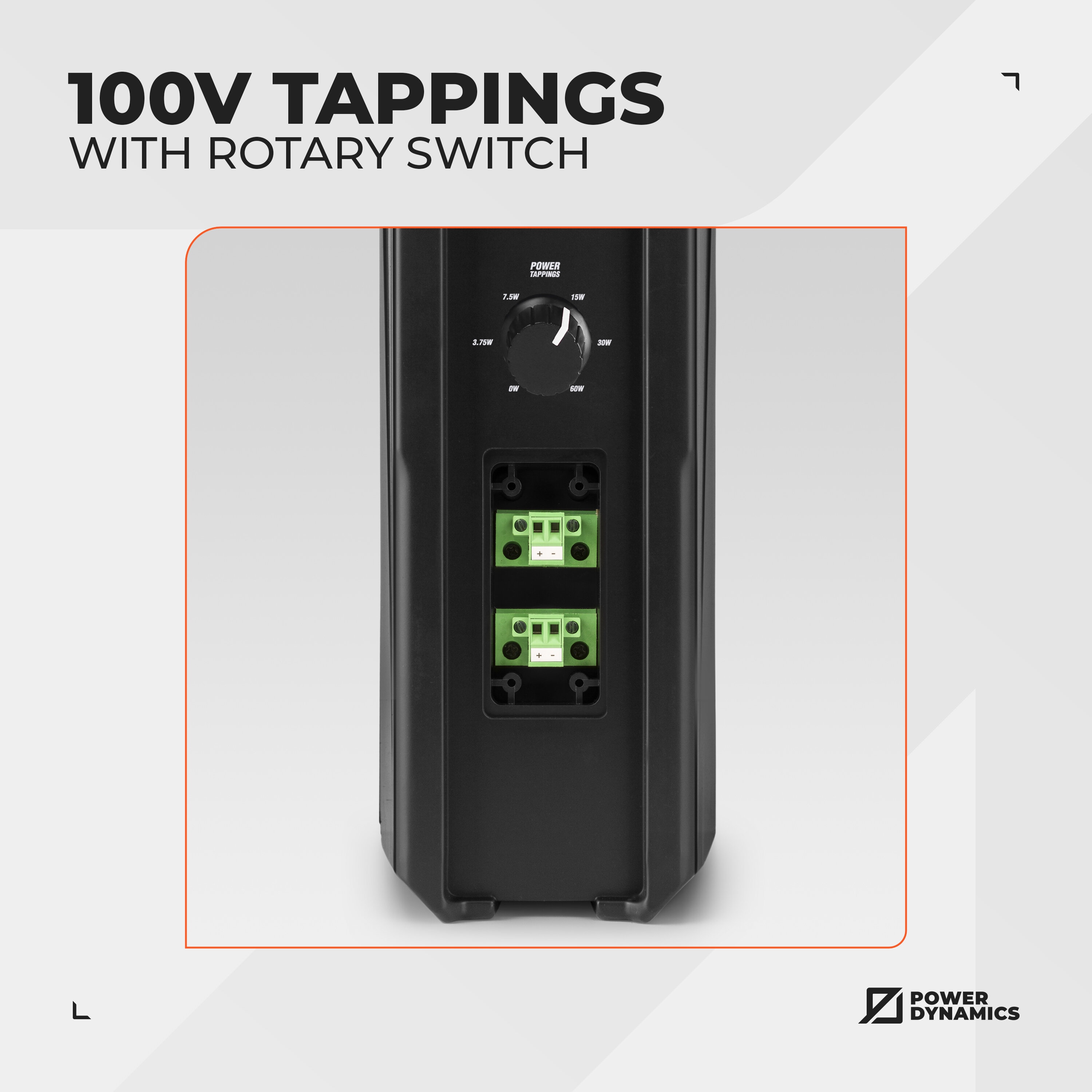Tappningar (100V) 3.75W, 6.25W, 12.5W, 25W, 50W