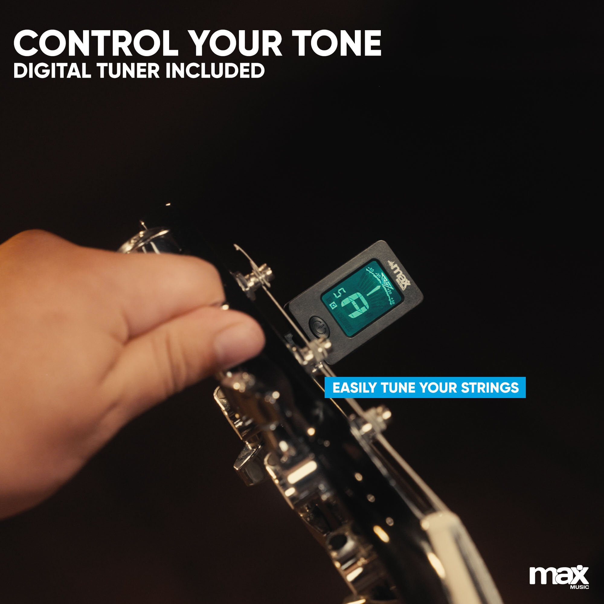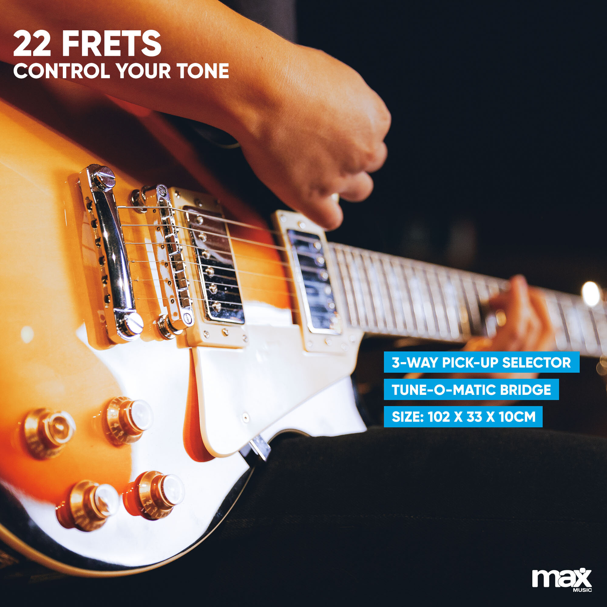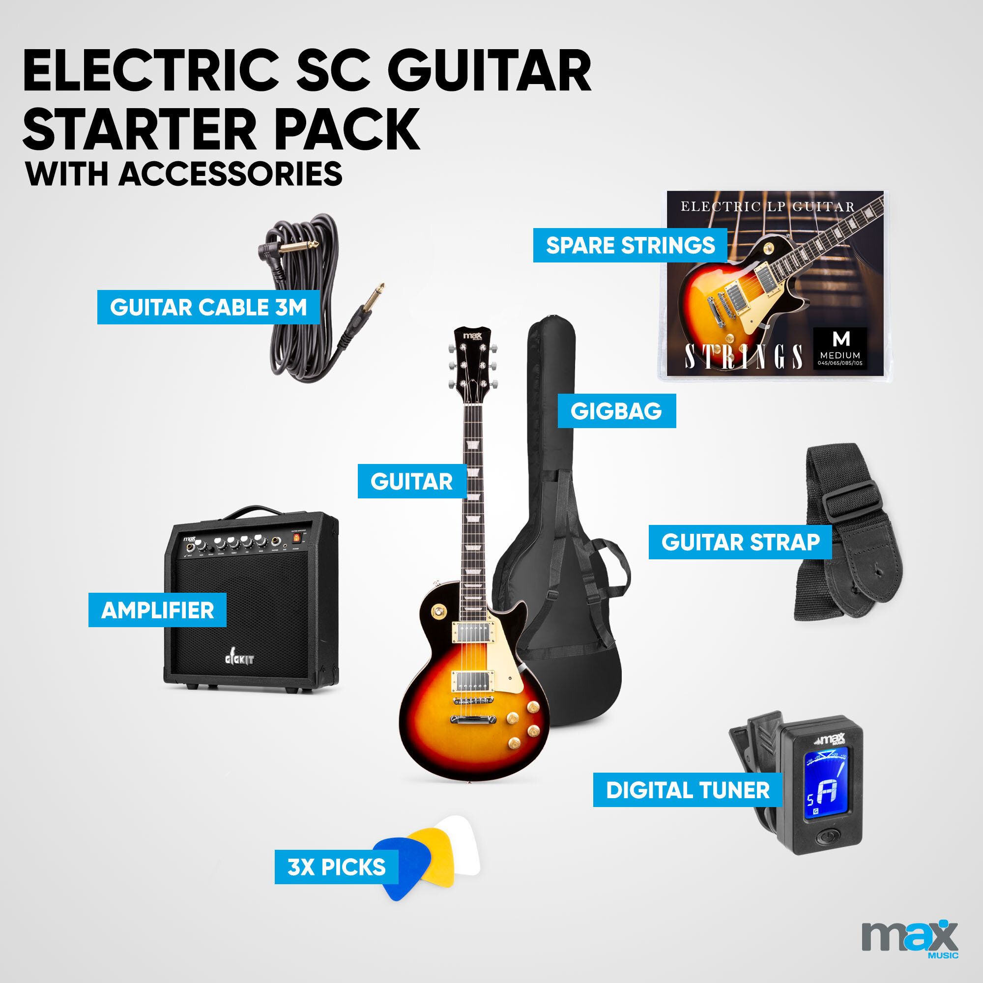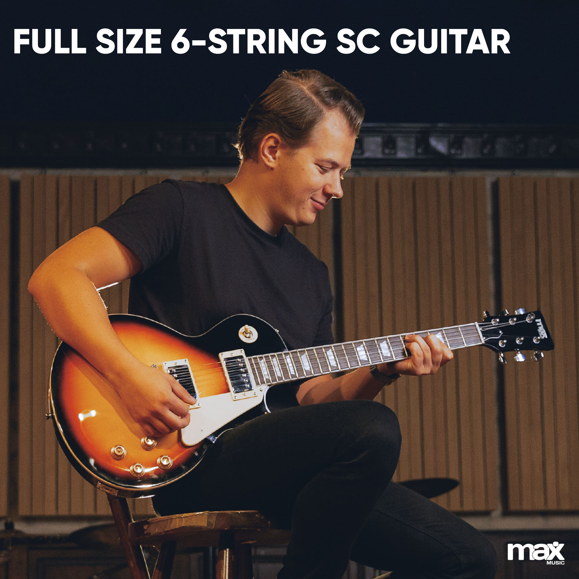 • Med MAX SC-style Sunburst elgitarrpaket får du allt du behöver för att börja spela direkt. Med den SC-style elektriska gitarren i centrum är detta paket perfekt för alla som gillar denna ikoniska gitarrdesign. Ingenting står längre i vägen för dina musikaliska ambitioner – allt du behöver för att komma igång ingår.