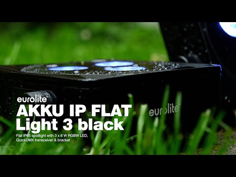 Flat IP65 spotlight with 3 x 8 W RGBW LED, QuickDMX transceiver and bracket