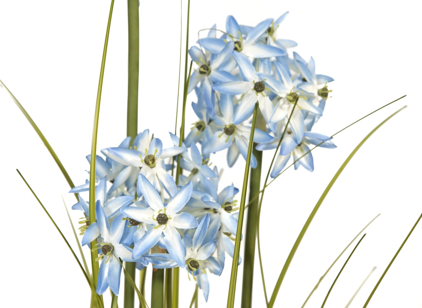 With the artificial allium grass from Europalms, you can bring a piece of summer into your home or business premises. It is versatile and with a few simple steps you can set targeted floral accents.The perennial has a total height of about 120 cm and consists of 3 umbels of different heights with star-shaped flowers in blue and white. These are surrounded by lushly arranged, strap-shaped foliage leaves made of PE, which already fall into shape by themselves when placed.As a cover of the included basic garden pot serve incorporated pebbles and artificial moss. Thus, it can serve as a stand for a planter, as well as be used as a decorative pot.