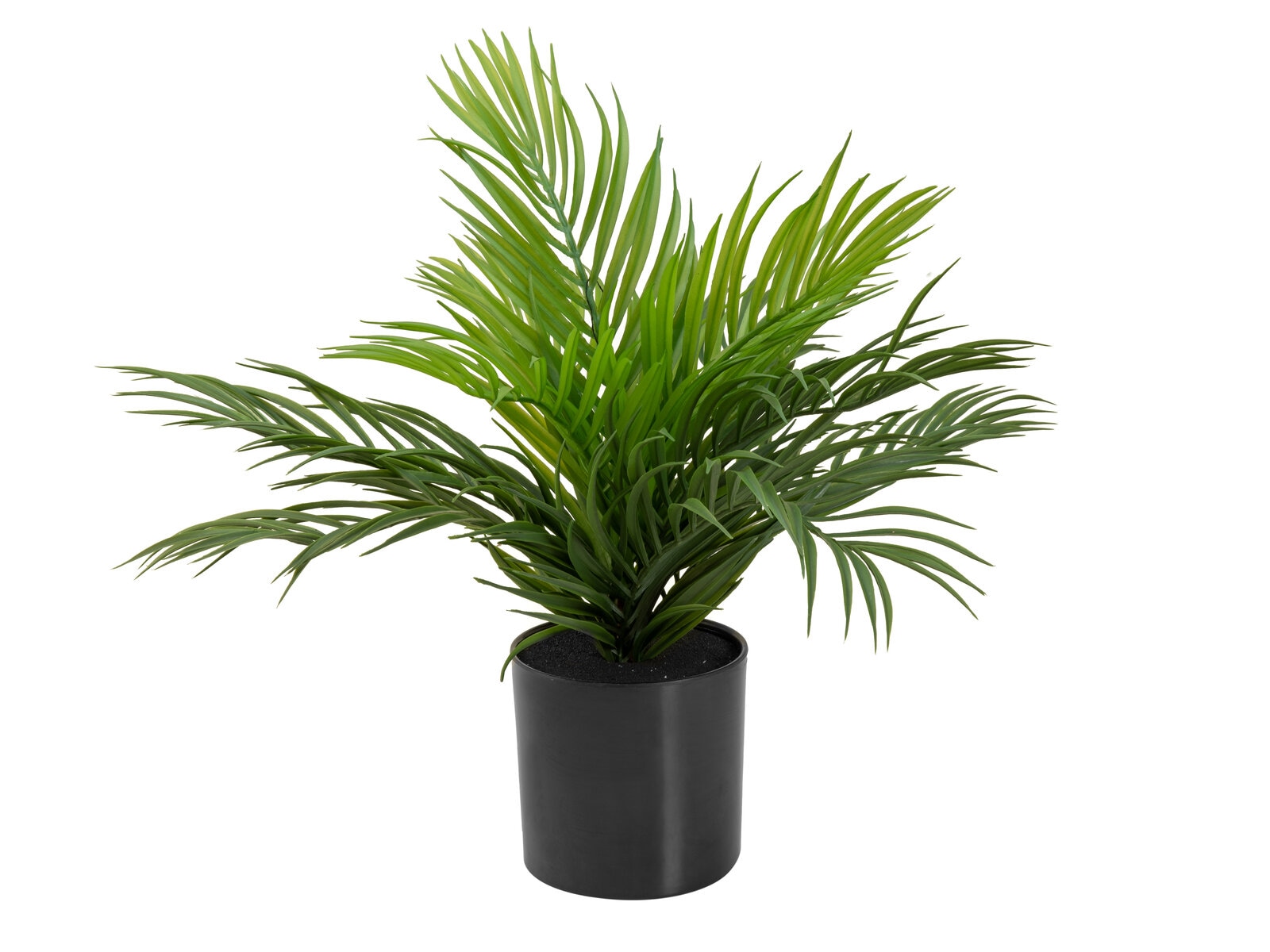 Whether for work areas in home offices or open-plan offices, or as table and counter decorations for residential and commercial spaces, the artificial mini golden fruit palm brings fresh greenery to your premises. As a houseplant, it finds its use anywhere where space is limited.From the tube-like shoots, only the pinnate foliage can be seen as bushy branched fronds on the artificial seedling of an areca palm. These were completely made of PE - so the plant can also find its use in the protected outdoor area.The included basic garden pot is covered with artificial soil and can serve as a stand for a planter, as well as be used as a decorative pot.