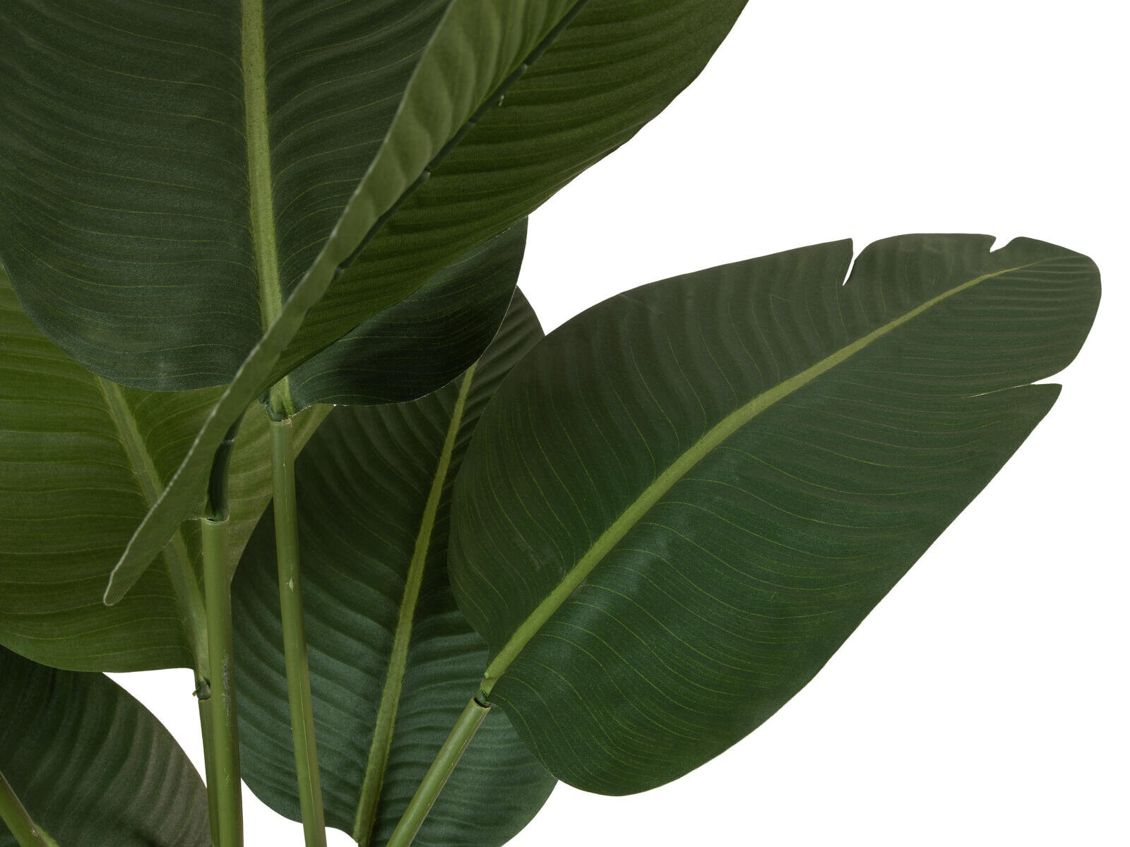 The impressive foliage of the strelitzia lends any room a natural, tropical elegance. Originally native to South Africa and the Canary Islands, the plant is a stylish eye-catcher - whether in the restaurant, office or living room at home.The artificial strelitzia from Europalms impresses with its lifelike design. Without any flowers, the 110 cm high artificial plant focuses on its striking leaf structure, which consists of slightly curved leaves in a rich green. This gives it a robust yet elegant look that blends harmoniously into modern, minimalist living concepts.Some of the artificial plant's leaves are inserted into shafts during assembly - a clever solution for space-saving packaging and reduced transportation costs without compromising the look. A simple gardener's pot ensures stability and makes it easier to insert into a matching planter.