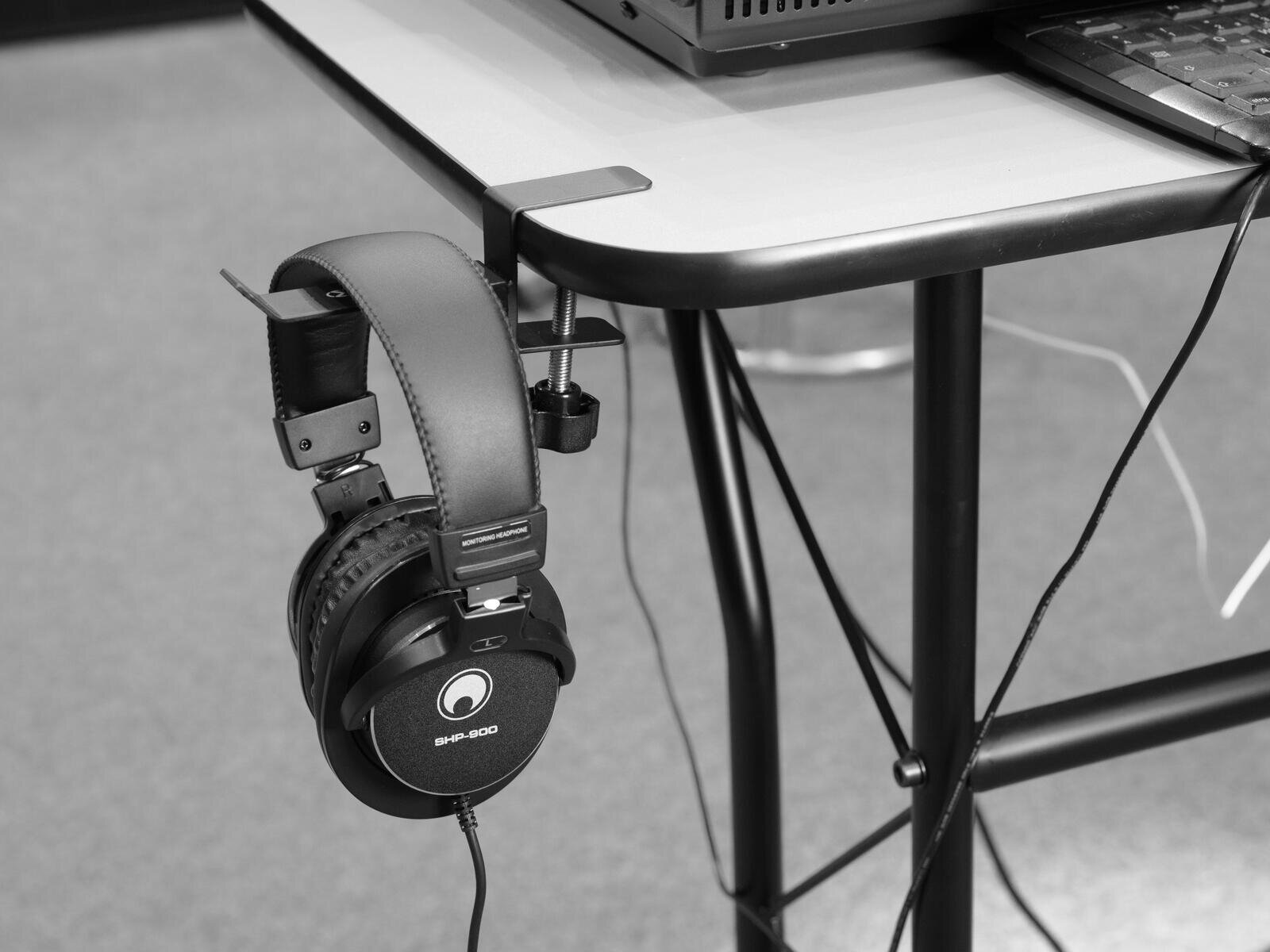 Practical table clamp for headphones