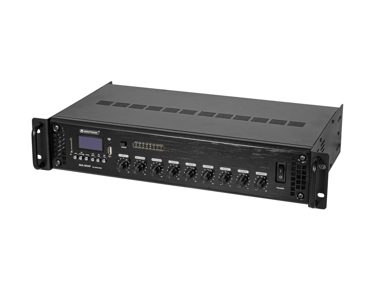 PA mixing amplifier with audio player,IR remote control and Bluetooth, 120 W RMS
