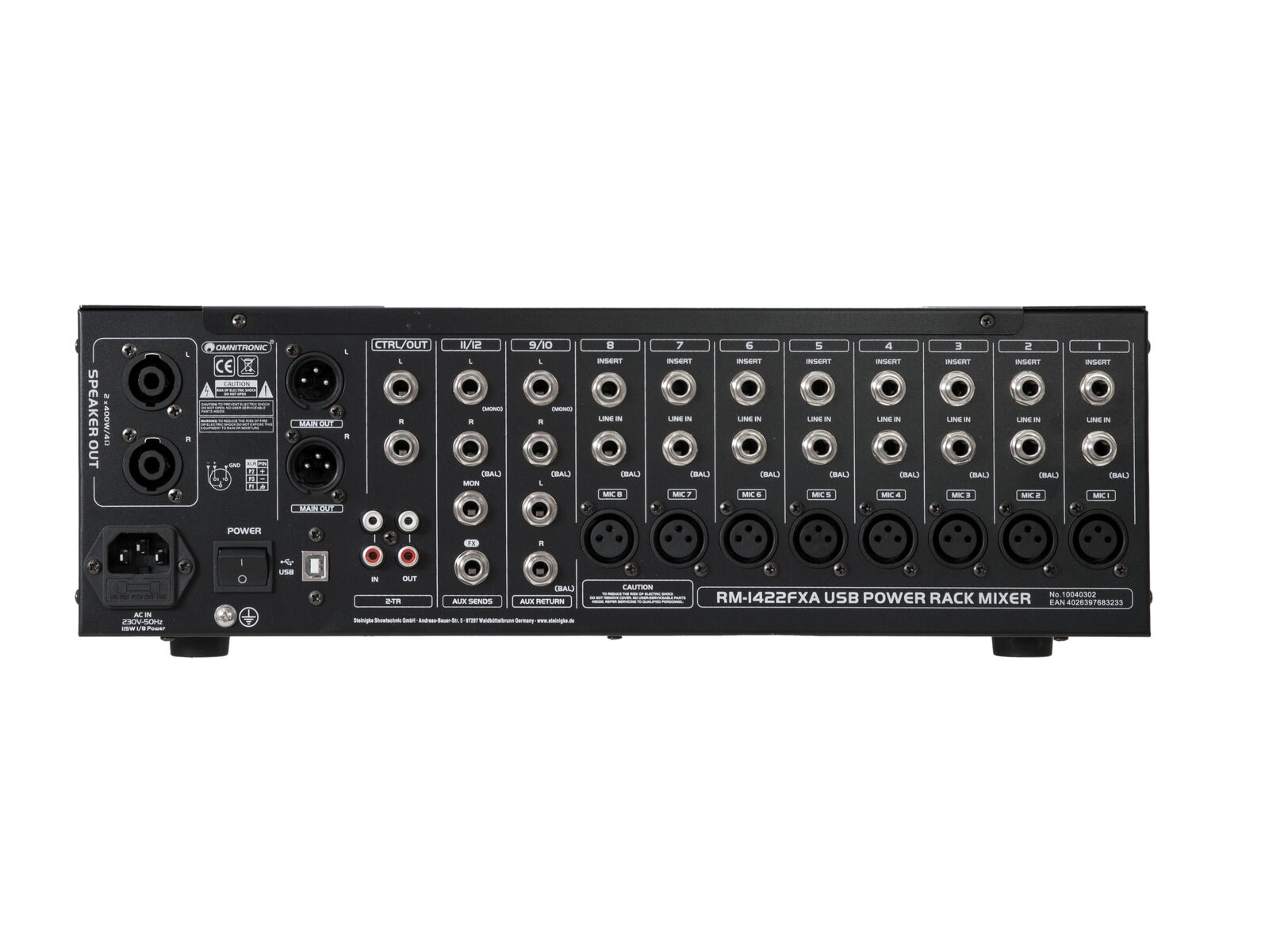 OMNITRONIC RM-1422FXA USB Rack Power Mixer