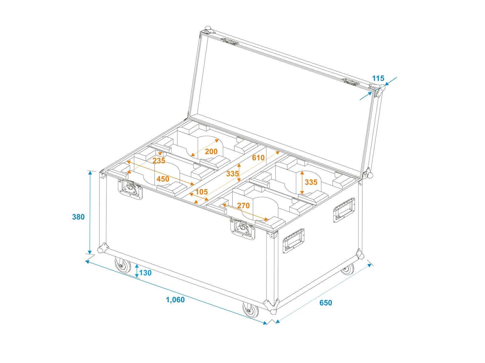 ROADINGER Flightcase 4x LED TMH-X7 Moving head