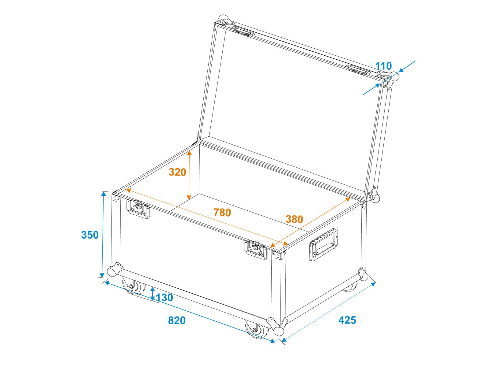 • 2 hinged, chromium plated case handles