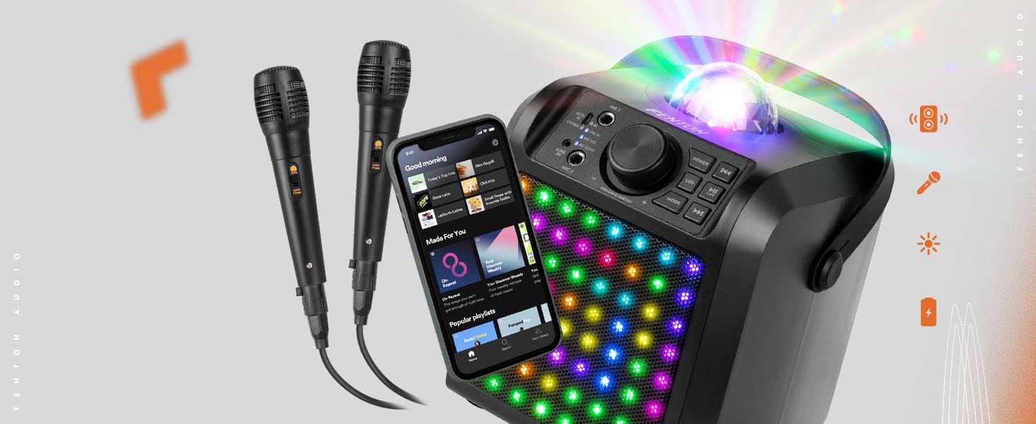 Fenton KAR55B karaoke, 2 mikrofoner - Karaoke högtalare med Bluetooth och Jelly Ball - Svart