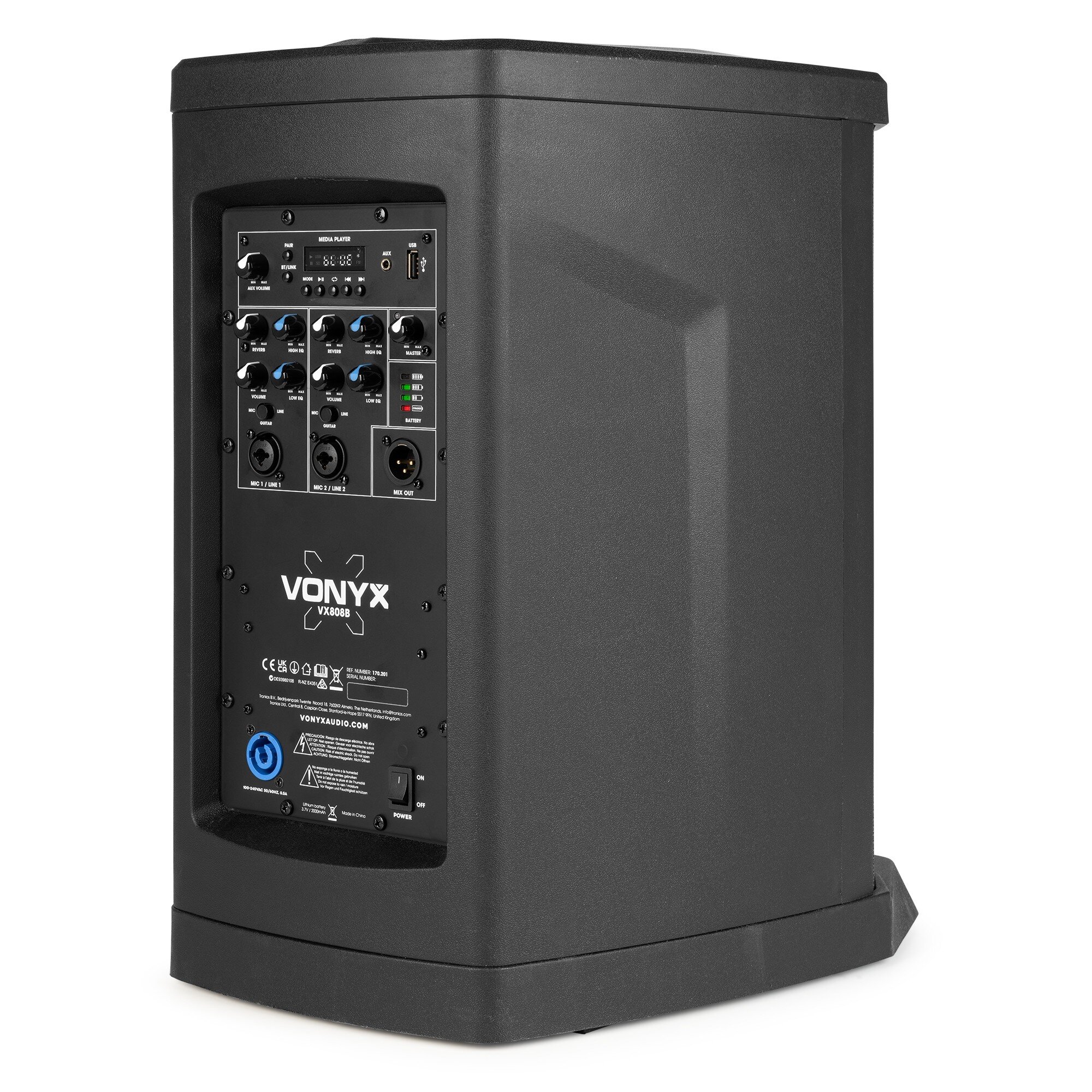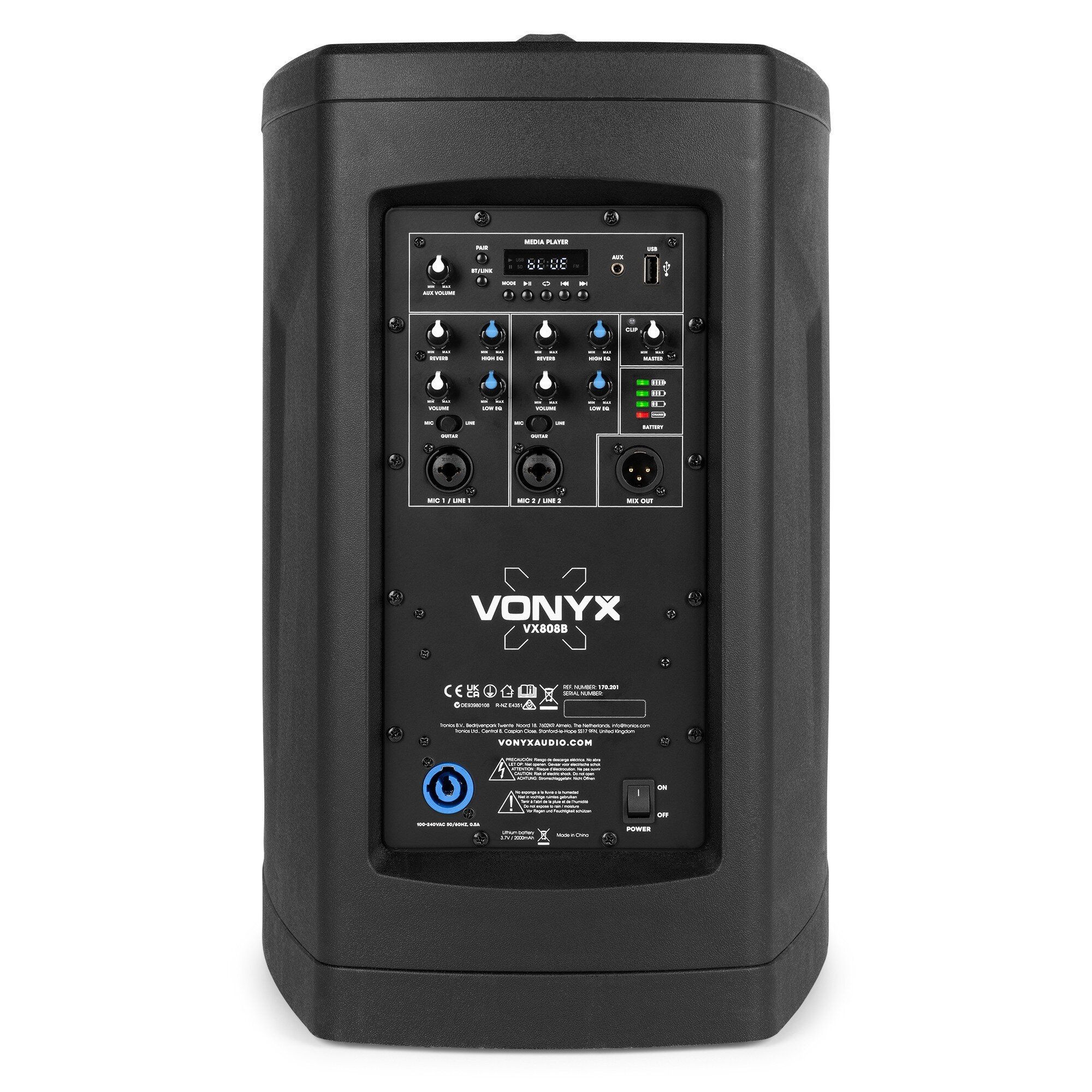 Systemet erbjuder flera anslutningsmöjligheter inklusive XLR, 6,3 mm jack och 3,5 mm ingångar samt XLR line out. Den inbyggda mixern med justerbar diskant, bas och eko ger full kontroll över ljudet. Med stereo pairing-funktionen kan du dessutom koppla ihop två VX808-system för en ännu bredare ljudbild.
