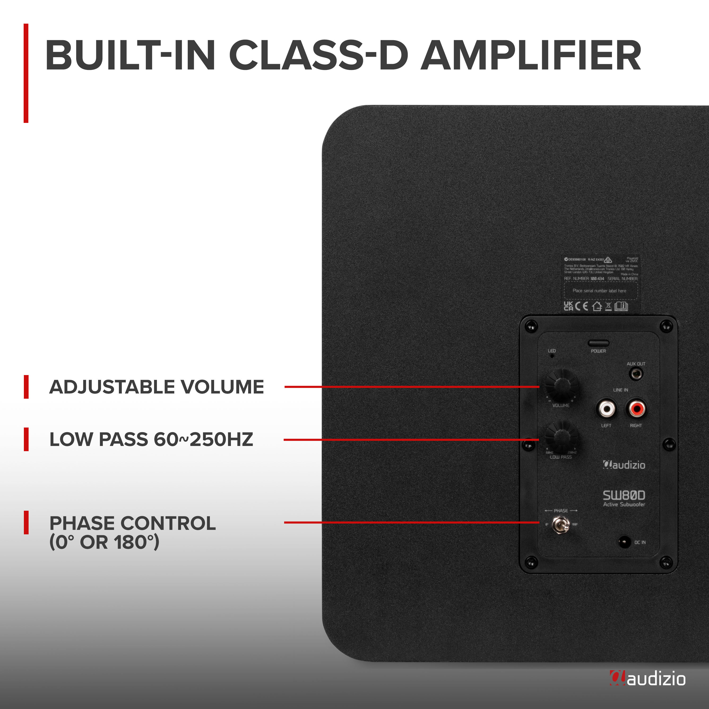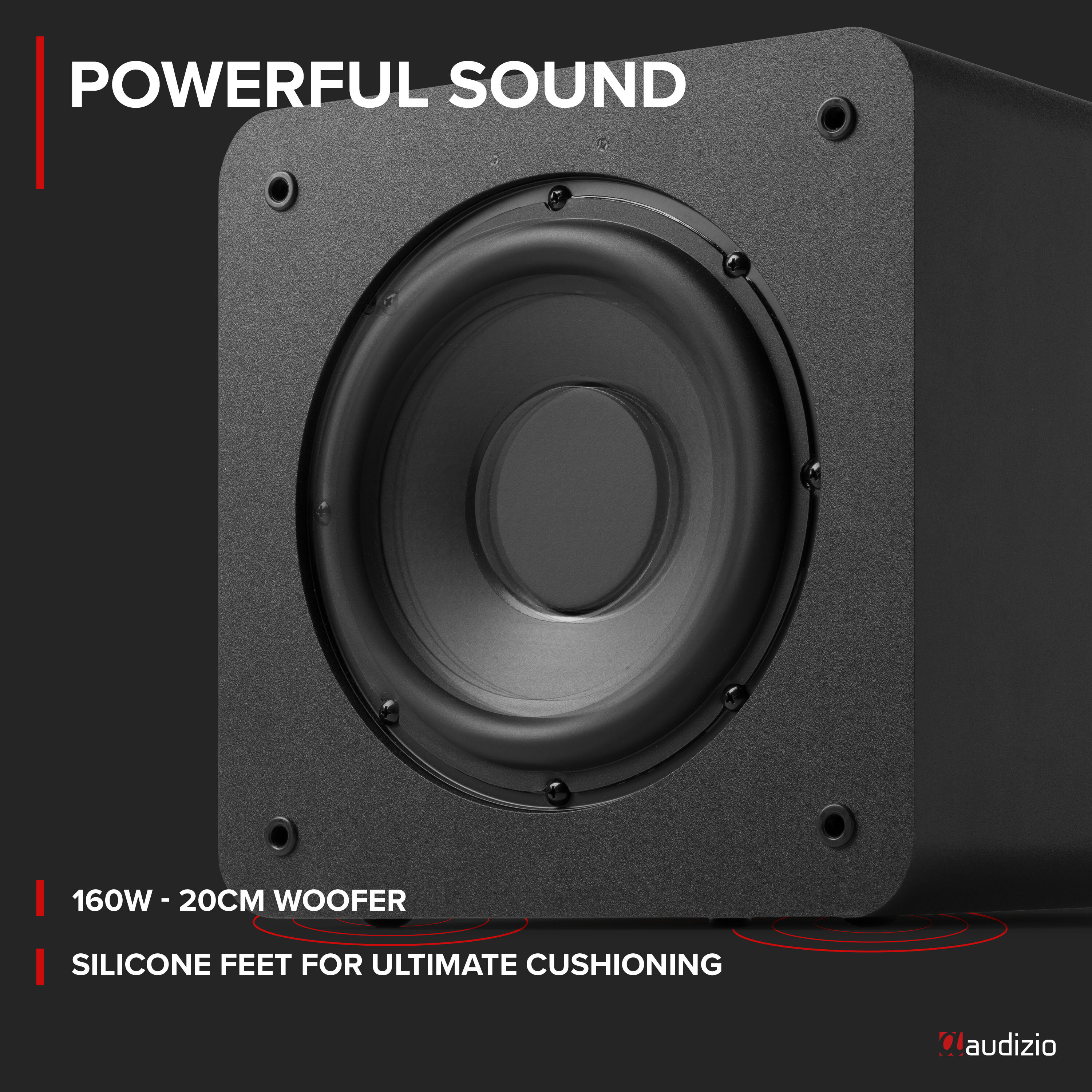 • Kraftfull 8” aktiv subwoofer med 160W maxeffekt