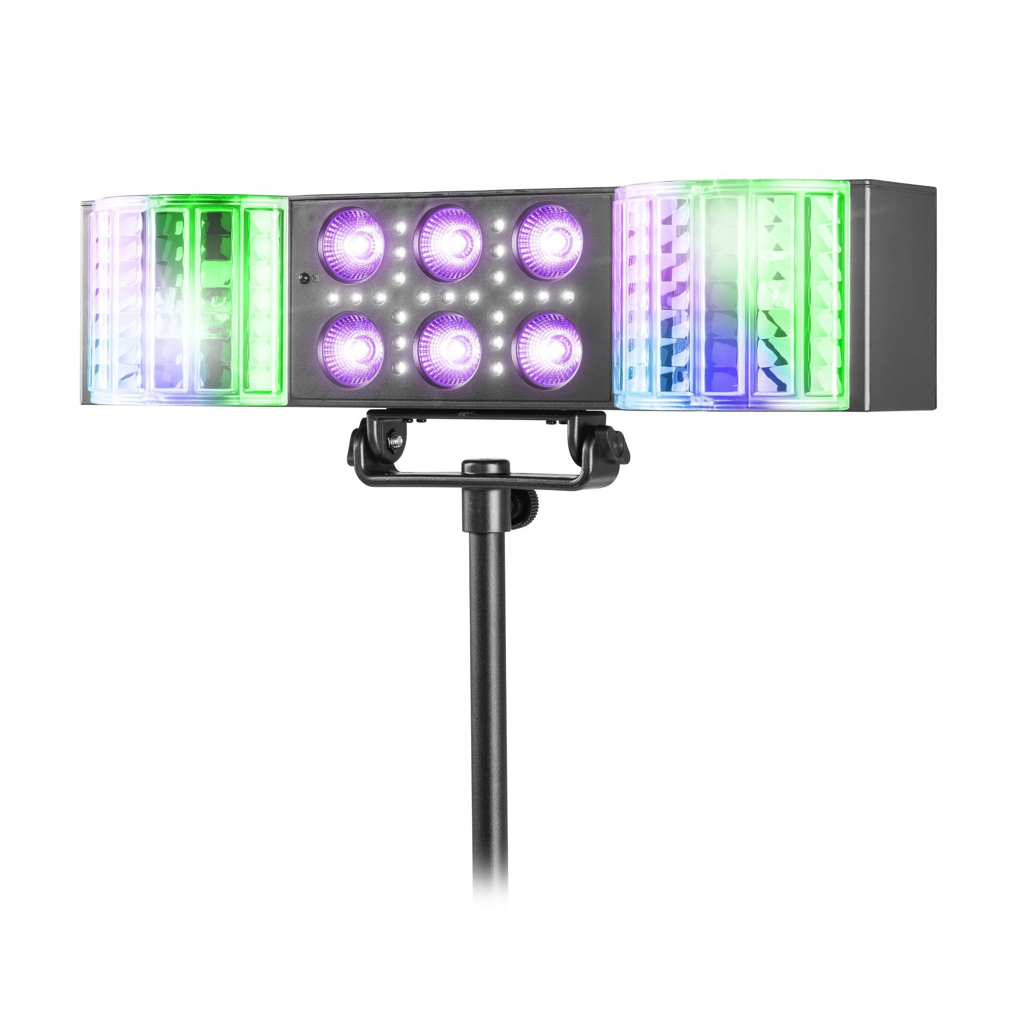 • Flera ljuseffekter i ett: derby, PAR, UV och strobe