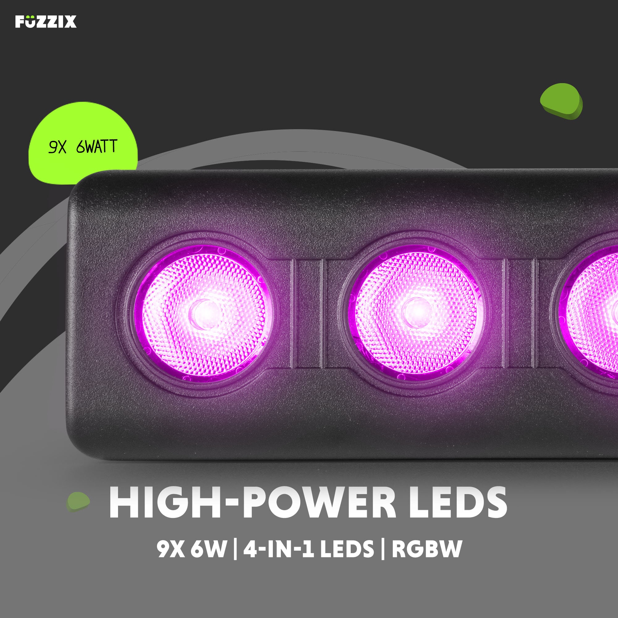 • Kraftfull RGBW-färgblandning med 9st 6W LEDs för intensiv ljusstyrka
