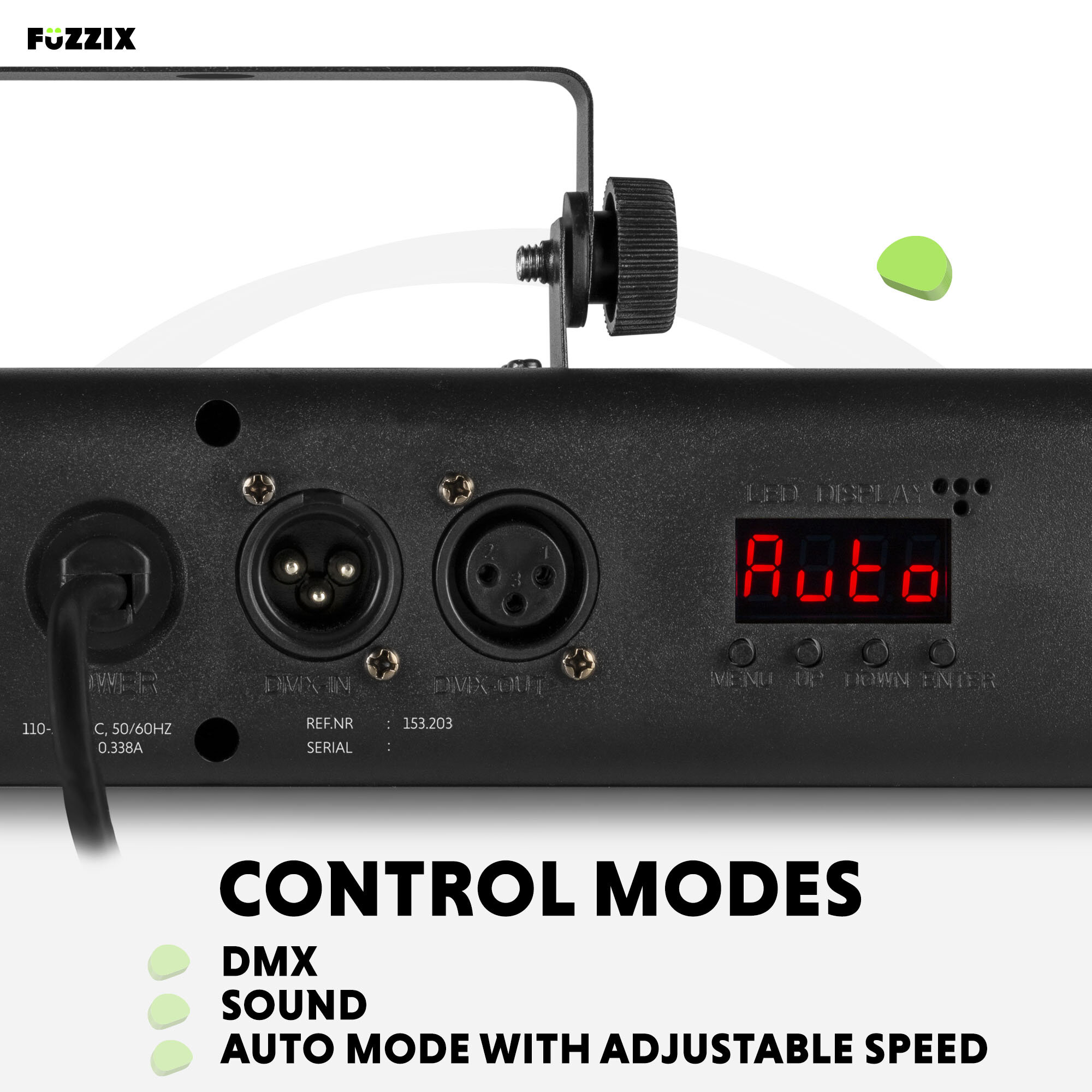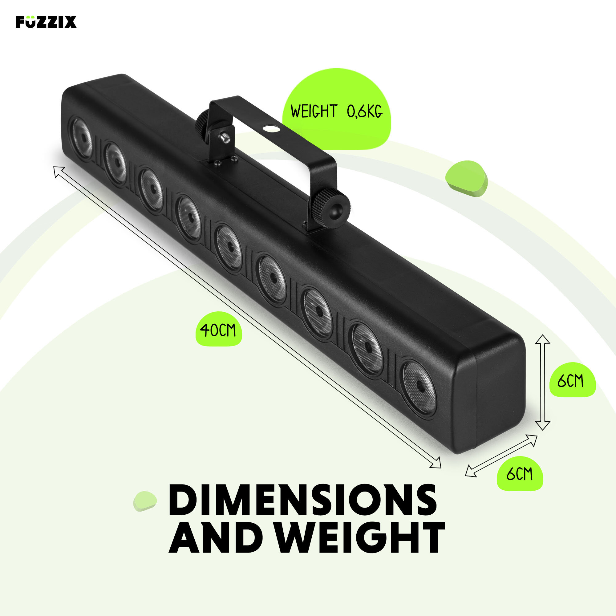 • Fuzzix Orion Party Wall Bar är utvecklad för dig som vill skapa ett spektakulärt och färgstarkt ljus på scen, hemmafesten eller vid större event. Med 9 kraftfulla RGBW-LEDs på 6W vardera levererar Orion en imponerande ljusstyrka och över 16,7 miljoner mixbara färgnyanser. Kombinationen av 4-in-1 LED-teknik och hög effekt ger starka, jämna färger utan att behöva ett stort antal dioder – perfekt för att bygga atmosfär även i större lokaler.