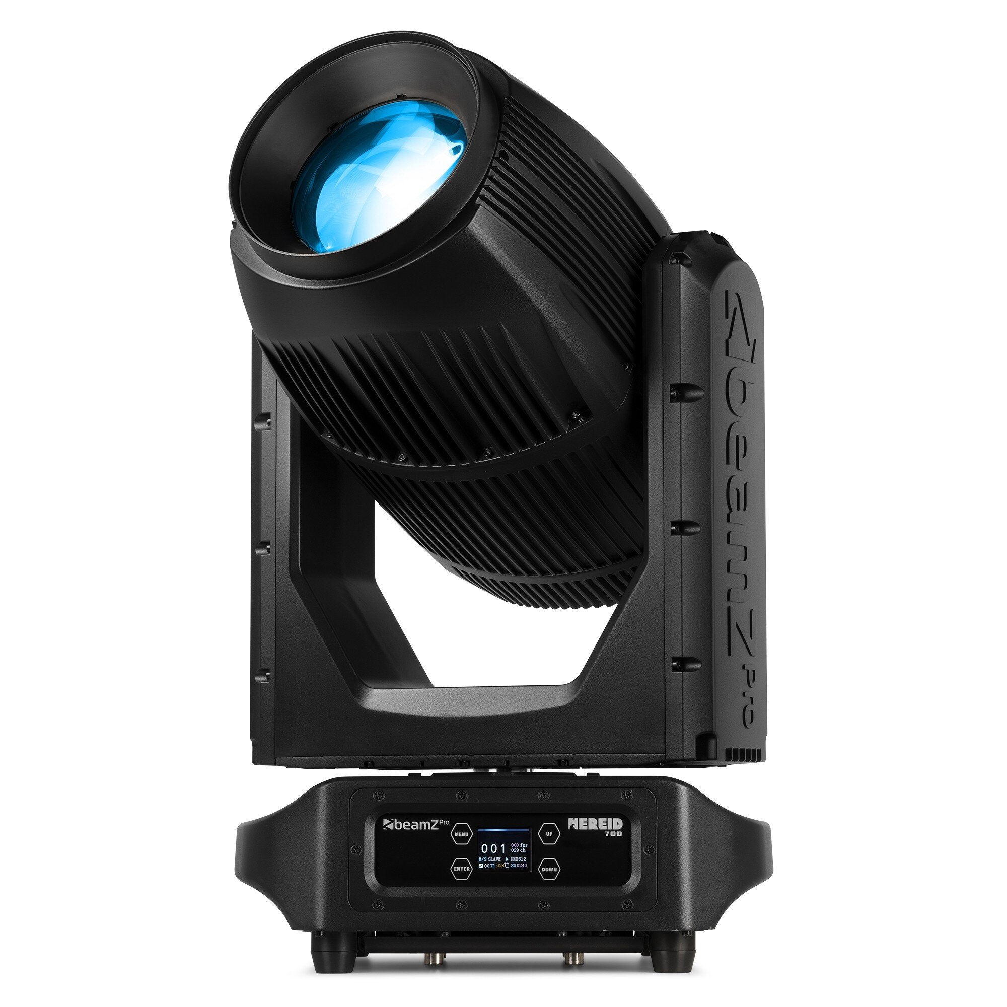 Styrning sker via DMX512 och RDM med anslutning via 3- och 5-polig XLR samt P-Con in/ut. Den robusta IP65-konstruktionen är byggd för tuffa miljöer och varierande väderförhållanden.