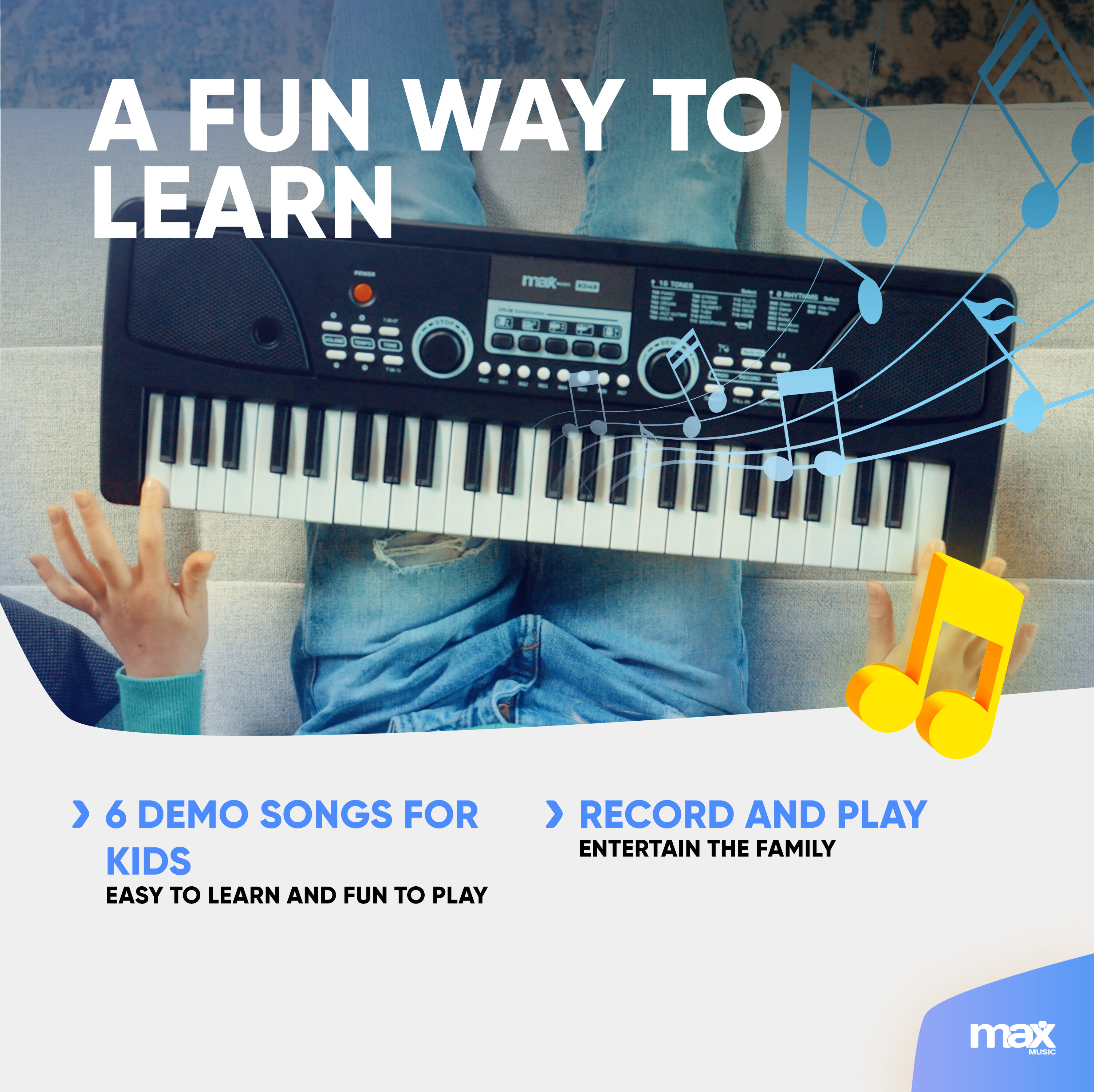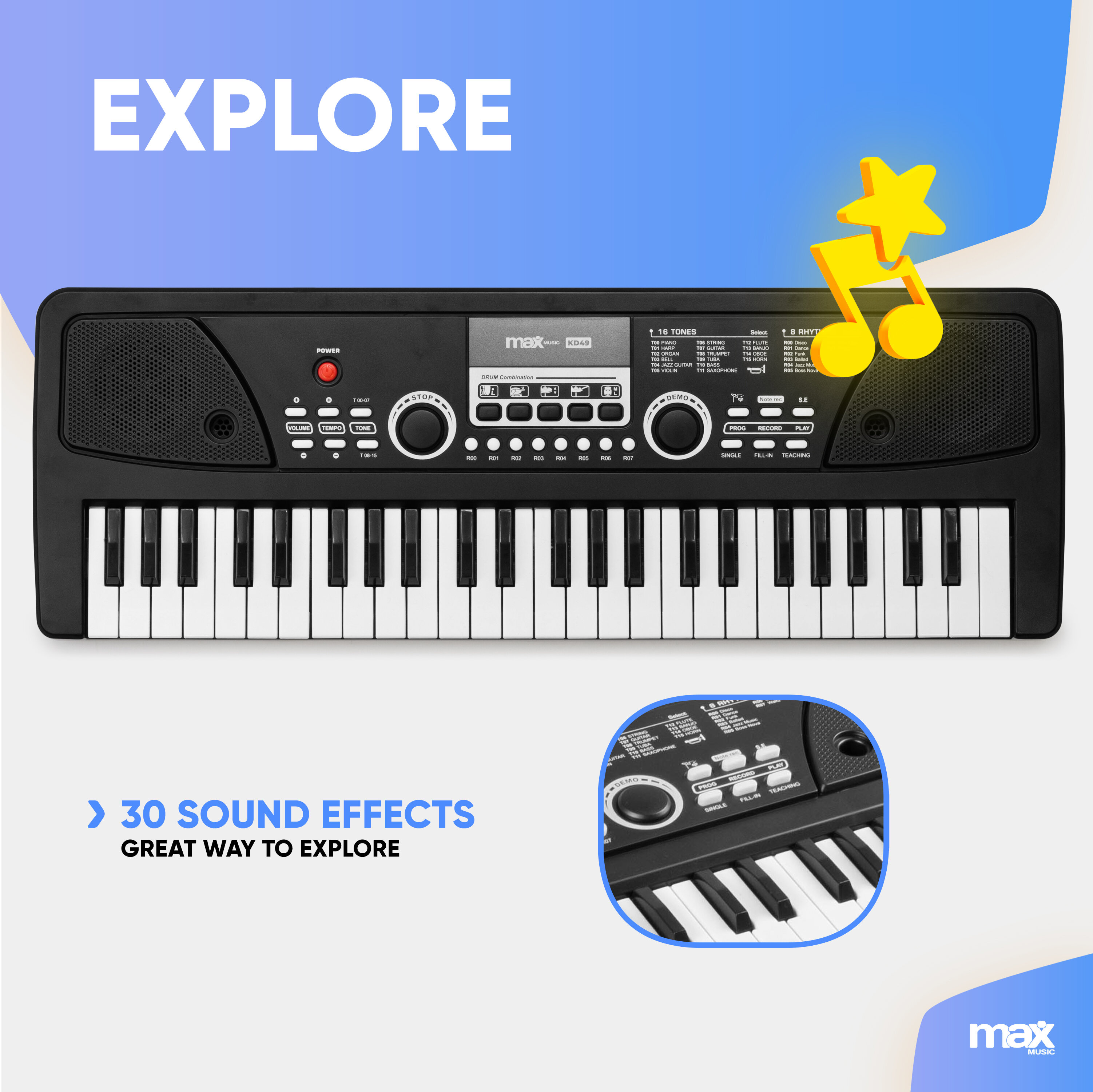 Max KD49 elektroniskt Keyboard, 49-tangenter med batteri, Svart