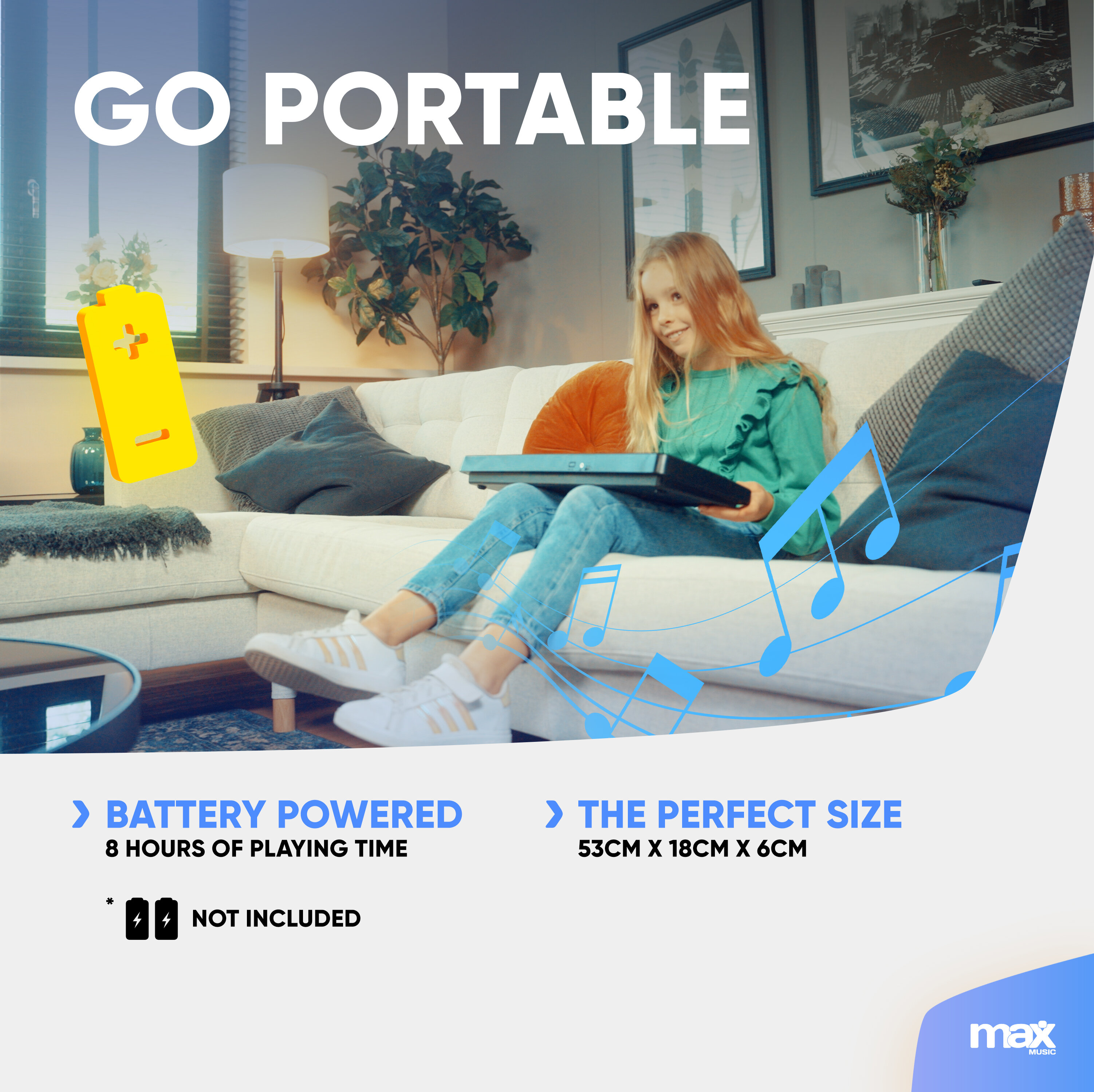 • Bärbar med lång batteritid – Lätt att ta med och spela i upp till 8 timmar.